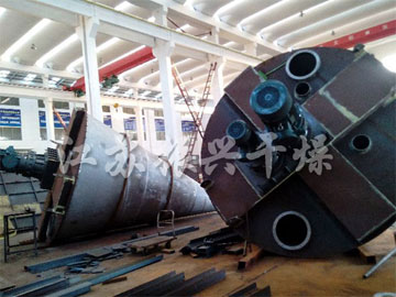 由上海某公司訂購的4臺滾筒刮板干燥機,由振興干燥車間加班制作,現(xiàn)已全部制作完畢,進行了預裝配和試機工作…